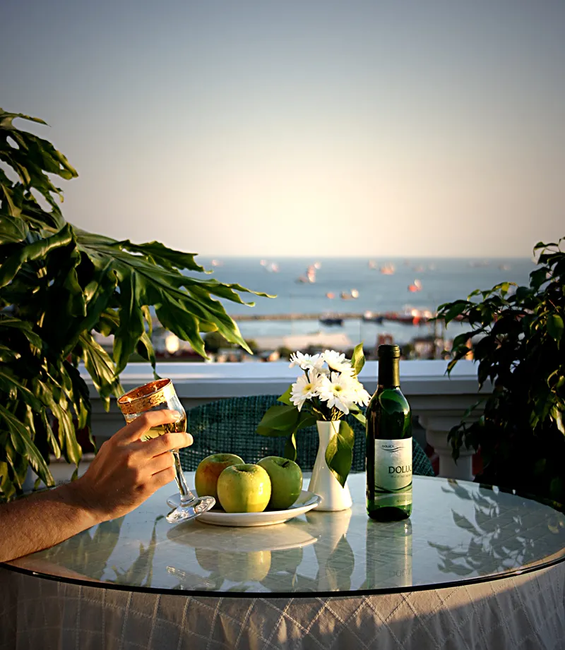 Our Roof Terrace, featuring both glass-enclosed and open-air sections, serves as a lounge/café exclusively for our hotel guests year-round.